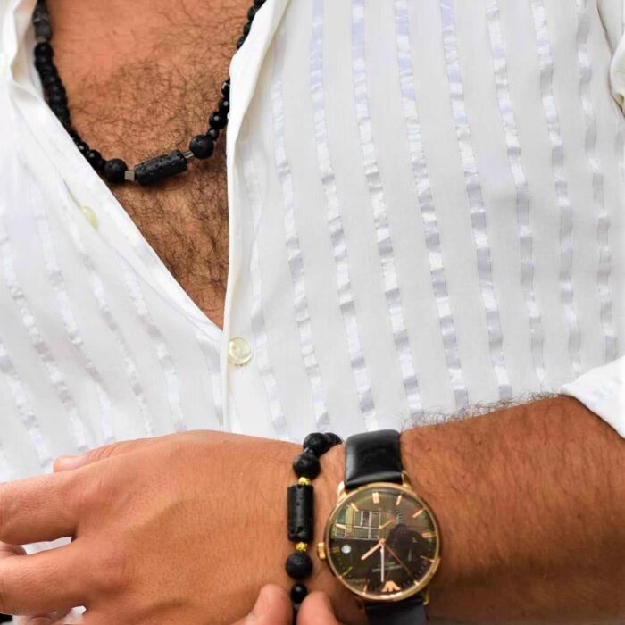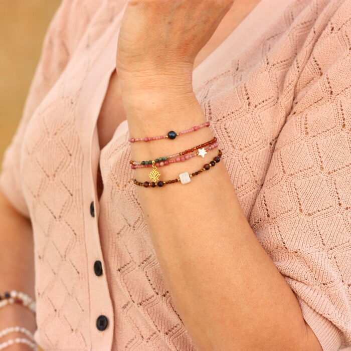 Tworzymy biżuterię z naturalnych kamieni, pereł oraz srebra Ag925 i srebra Ag925 pokrytego złotem, która subtelnie podkreśla kobiecość i jest idealna zarówno do pracy jak i na wieczorne wyjścia. W tworzonej przez nas biżuterii, wykorzystujemy m.in. szmaragdy, rubiny, szafiry, turmaliny, amazonity, ametysty, granaty i wiele innych, a także perły. Te piękne kamienie poza urodą, mają też bogatą symbolikę i pozytywny wpływ ma człowieka. Właśnie te cechy, a także unikalność i trwałość sprawiają, że biżuterię z kamieni naturalnych, uznaje się za najcenniejszą z wyrobów jubilerskich, a ona sama zyskuje wyjątkowego uroku.