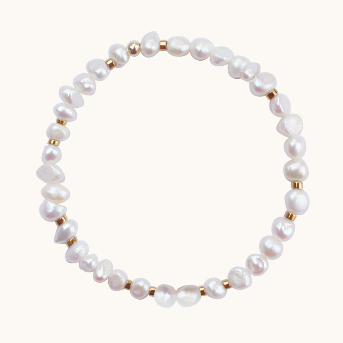 BDE114 BRANSOLETKA ELASTYCZNA Z PEREŁ I SREBRA 925 Z 24K ZŁOTEM