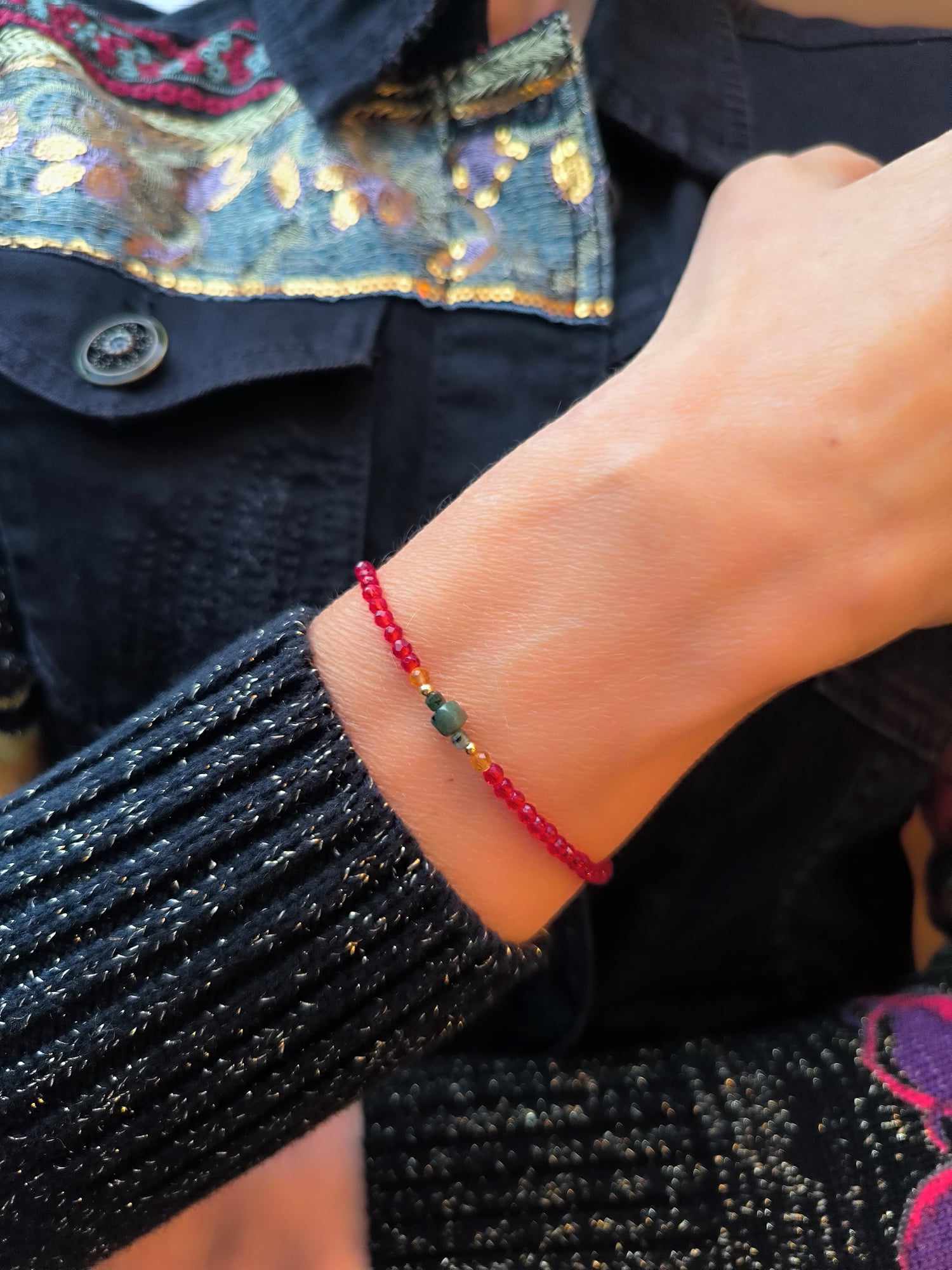 BDE121 Bransoletka ze spineli i szmaragdów