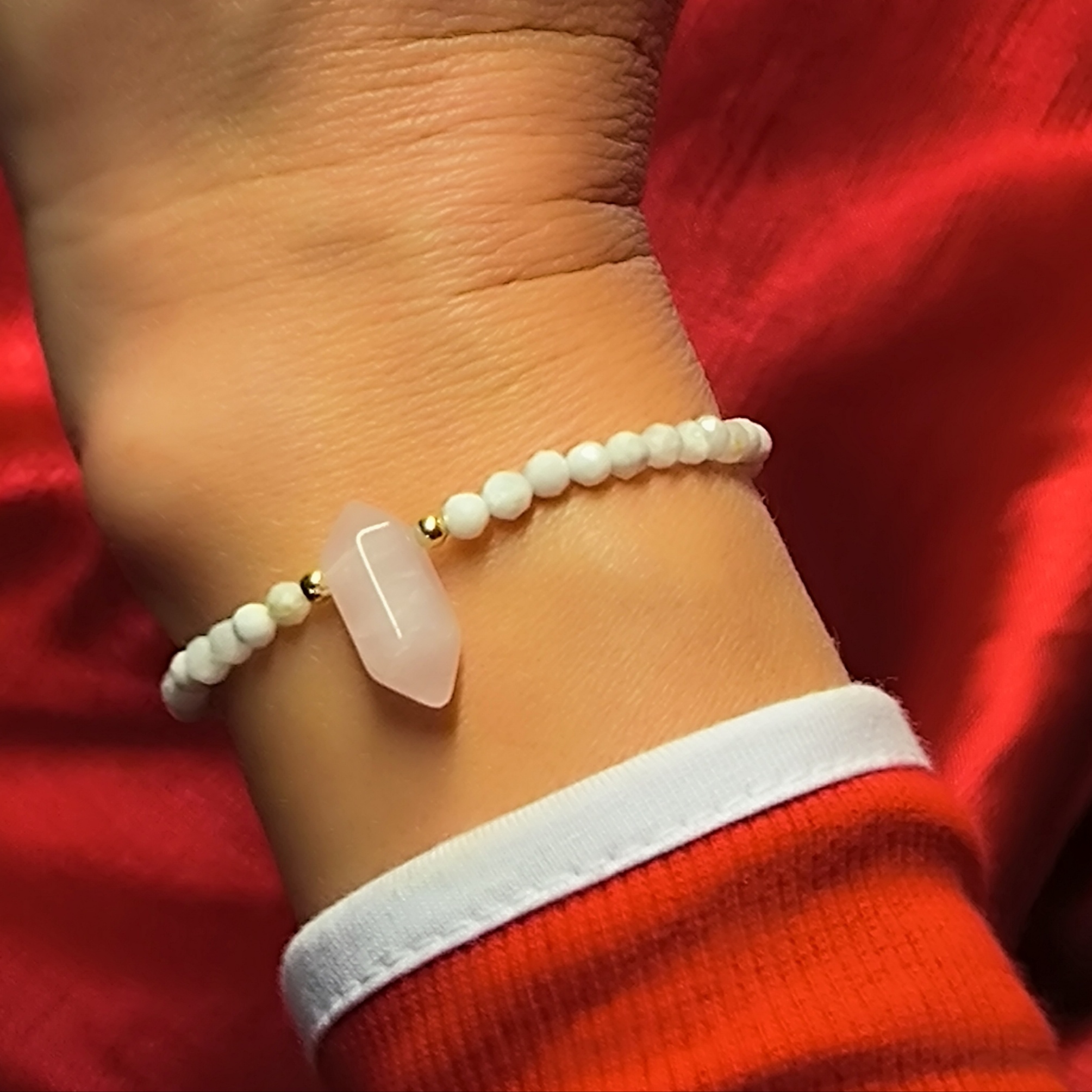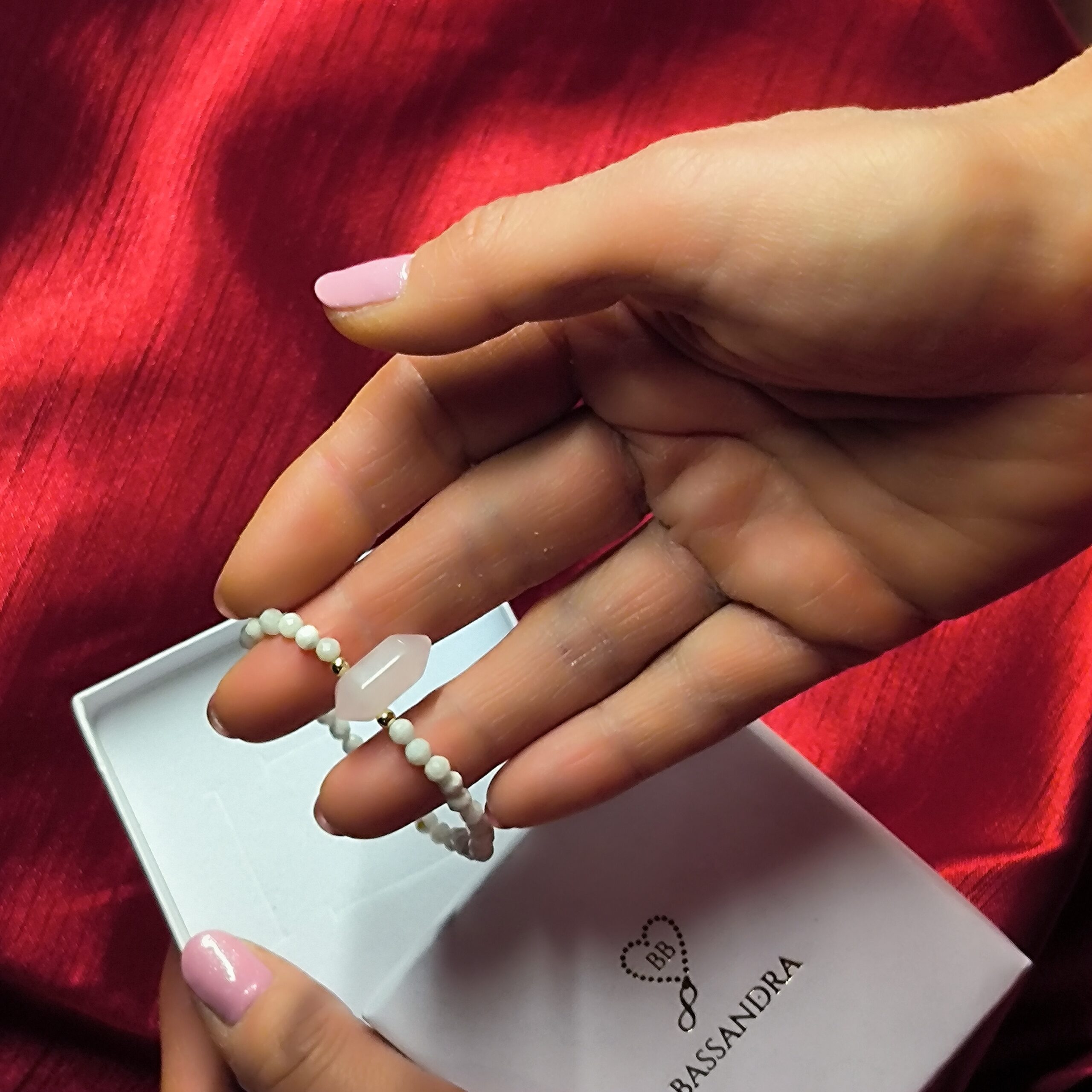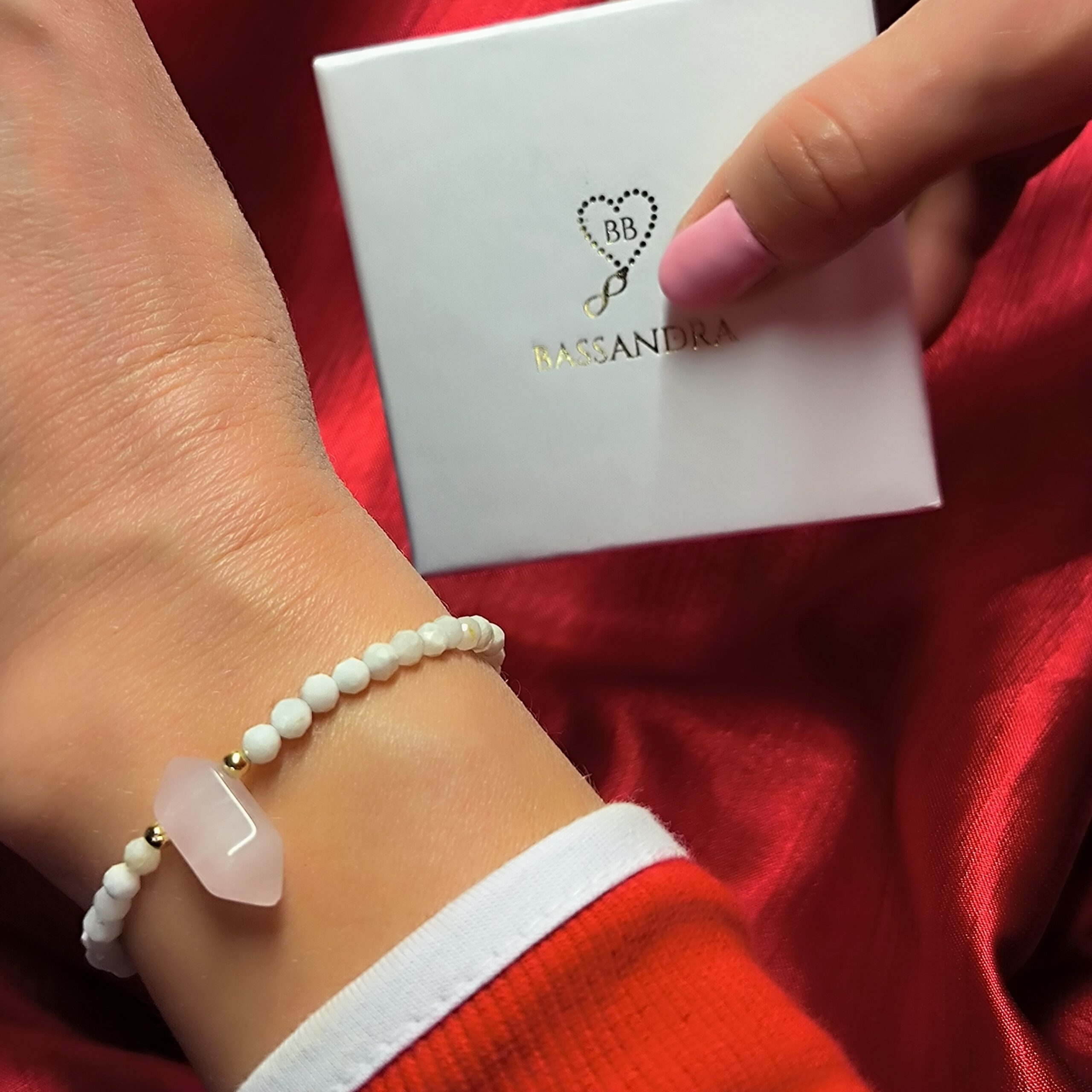 - Kryształ górski – jasnoróżowy ok. 12mm