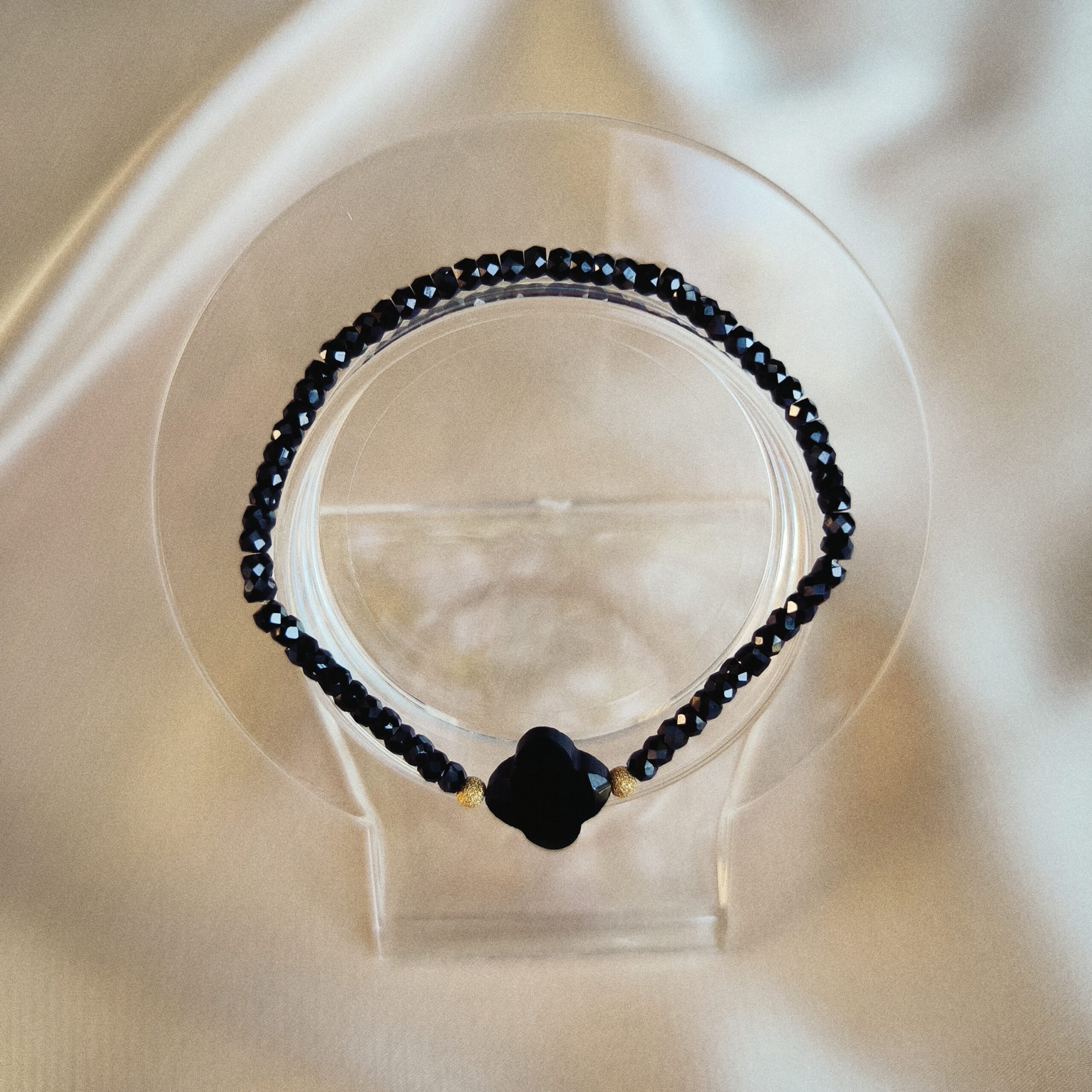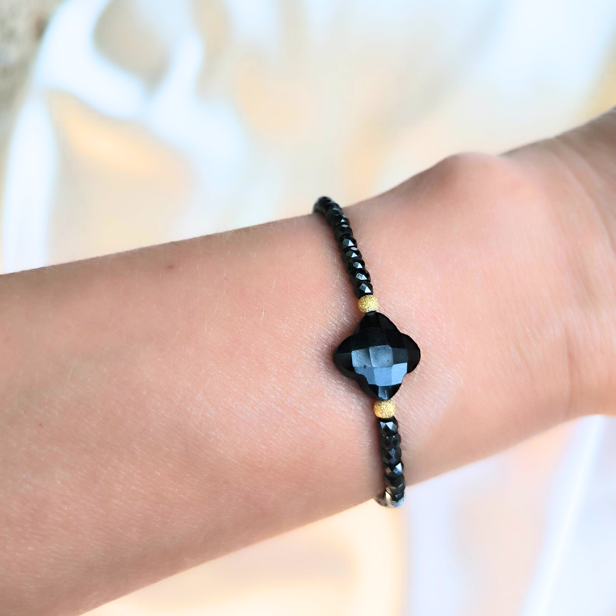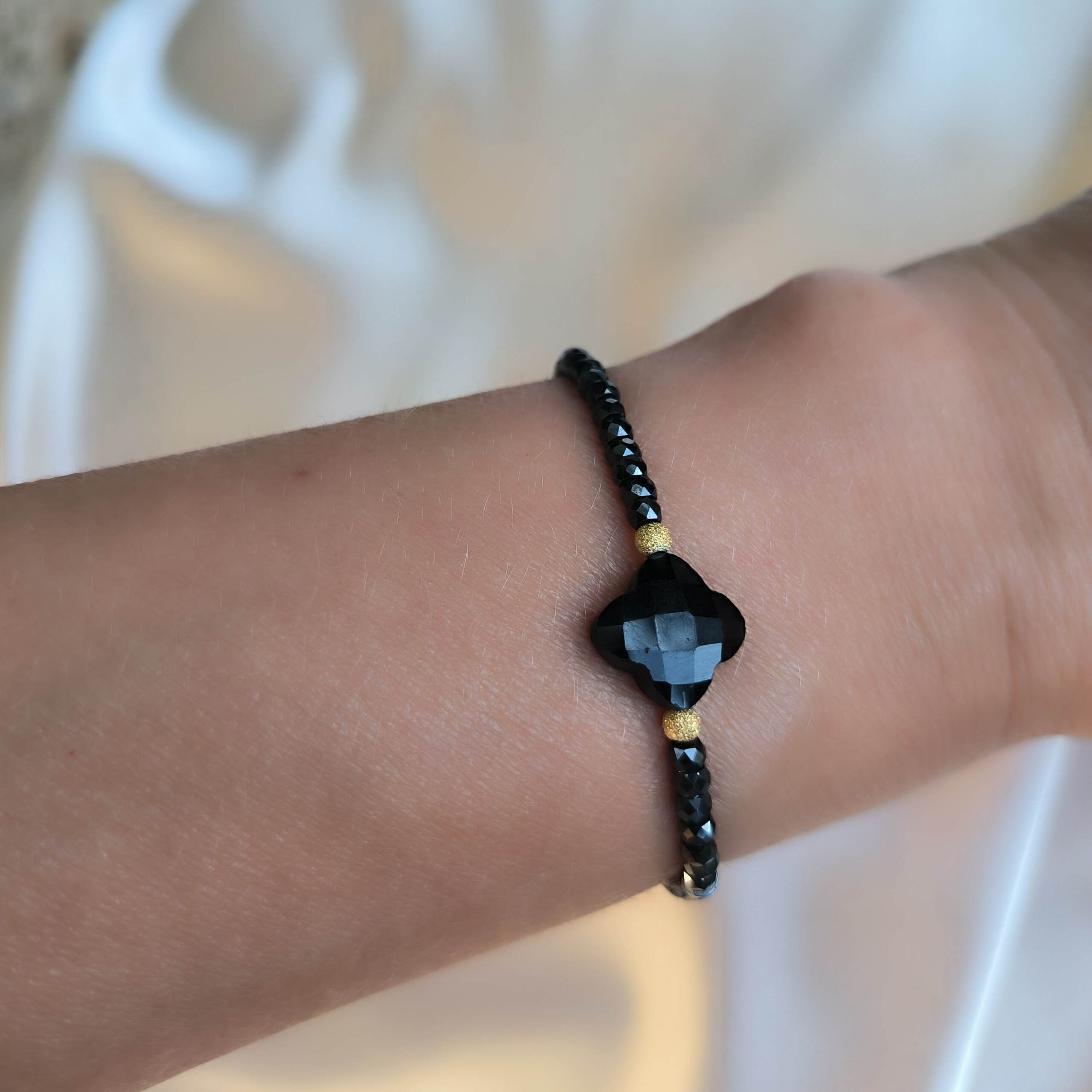 BDE128 BRANSOLETKA Z CYRKONII, Z KONICZYNKĄ Z ONYKSU I SREBRA Z 18K ZŁOTEM