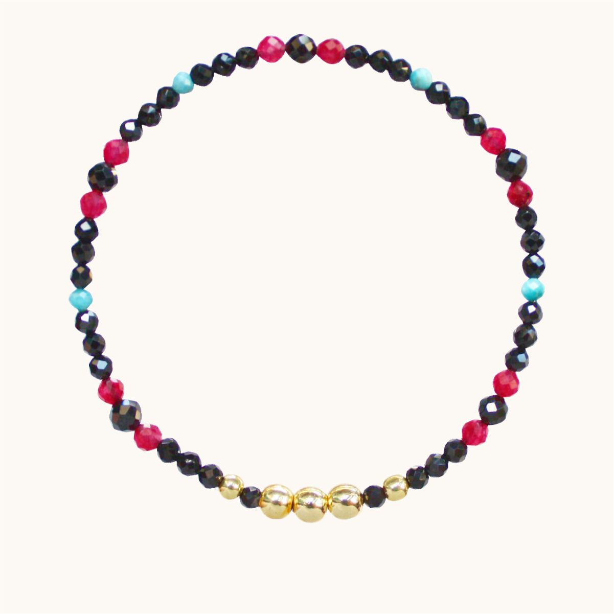 BDE67 Bransoletka elastyczna ze spineli, rubinów klarowanych, apatytów i hematytów