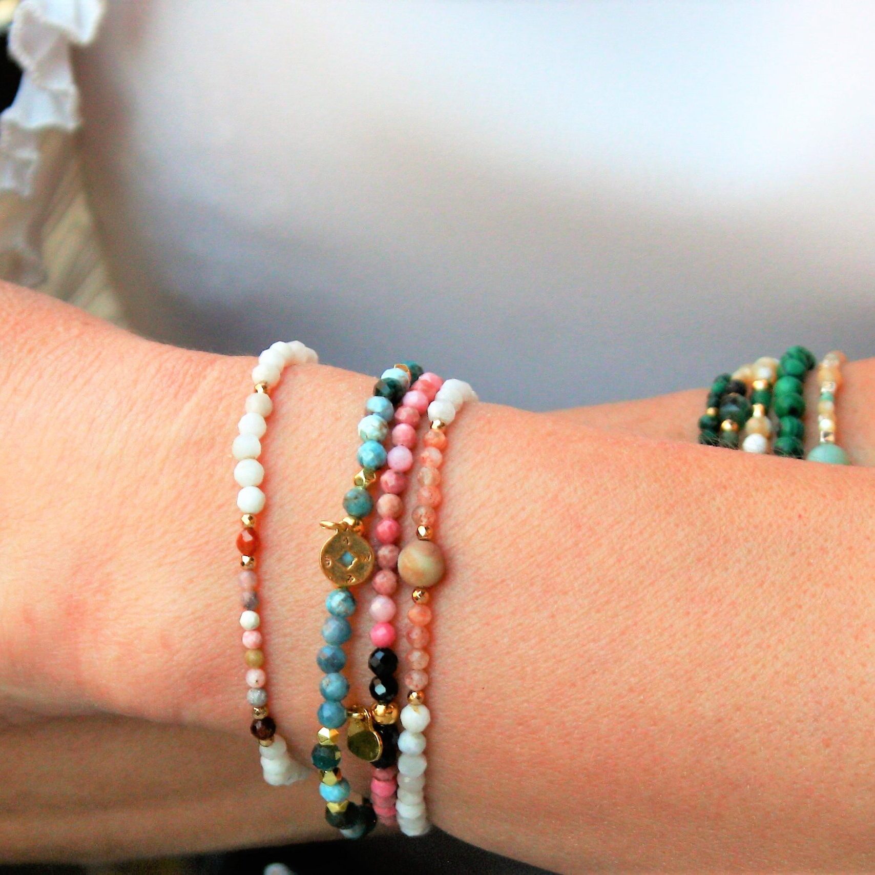 BDE69 Bransoletka elastyczna z apatytów oraz srebra pozłacanego 24K