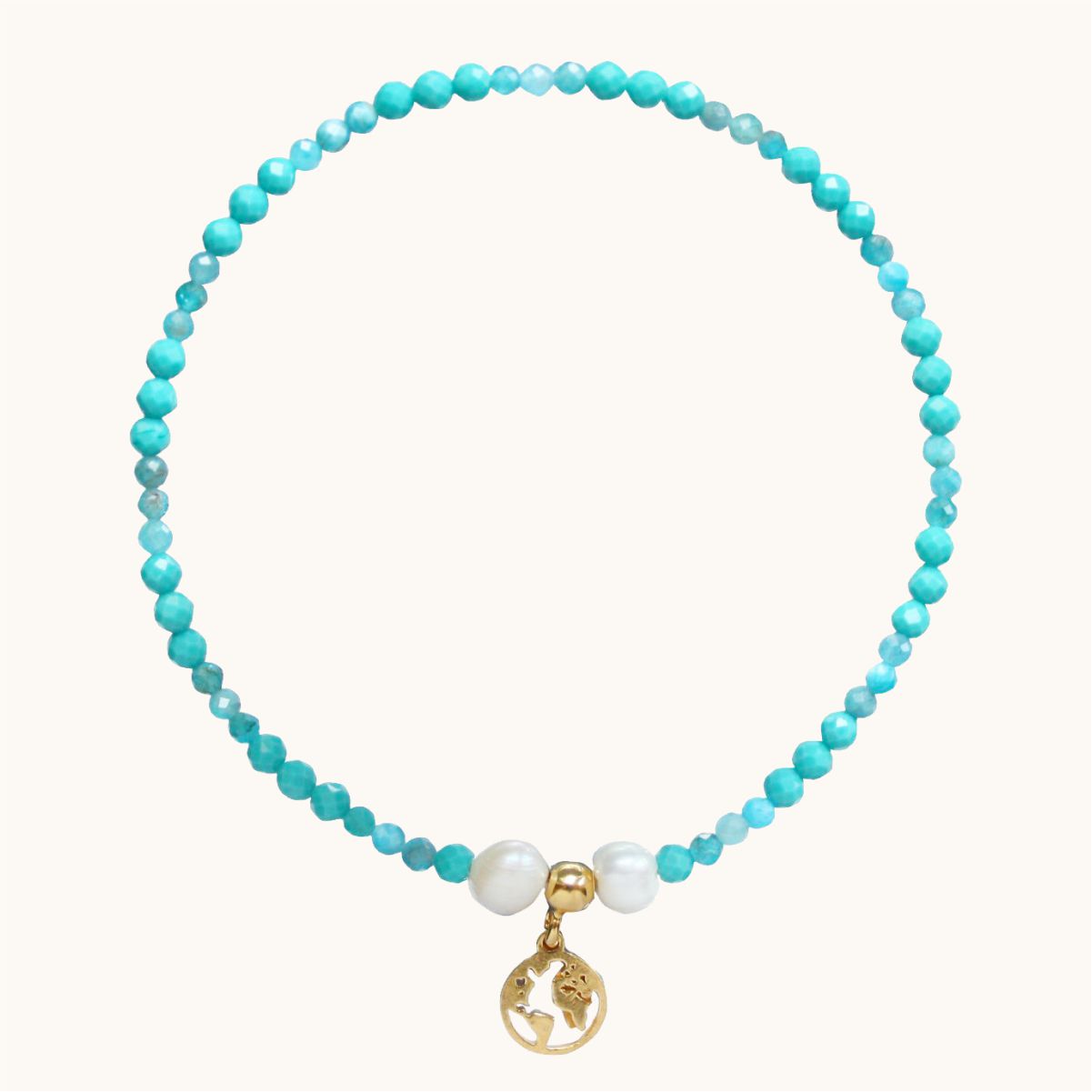 BDE83 Bransoletka elastyczna z magnezytów, apatytów, pereł oraz srebra pozłacanego 24K