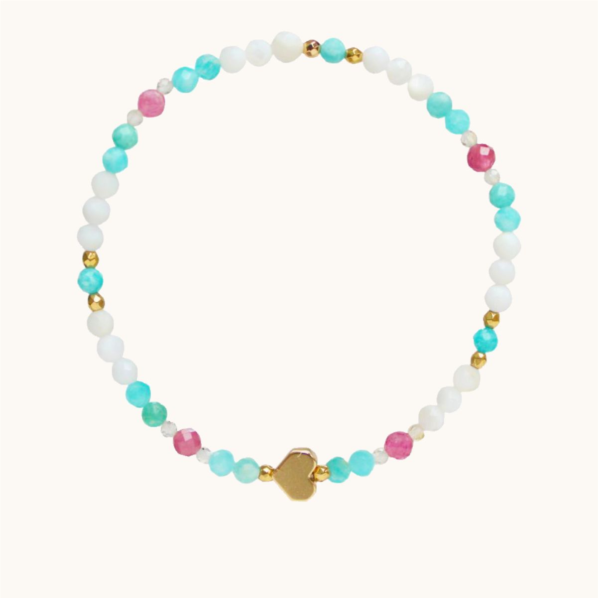 BDE85 Bransoletka elastyczna z cytrynów, amazonitów, turmalinów i masy perłowej