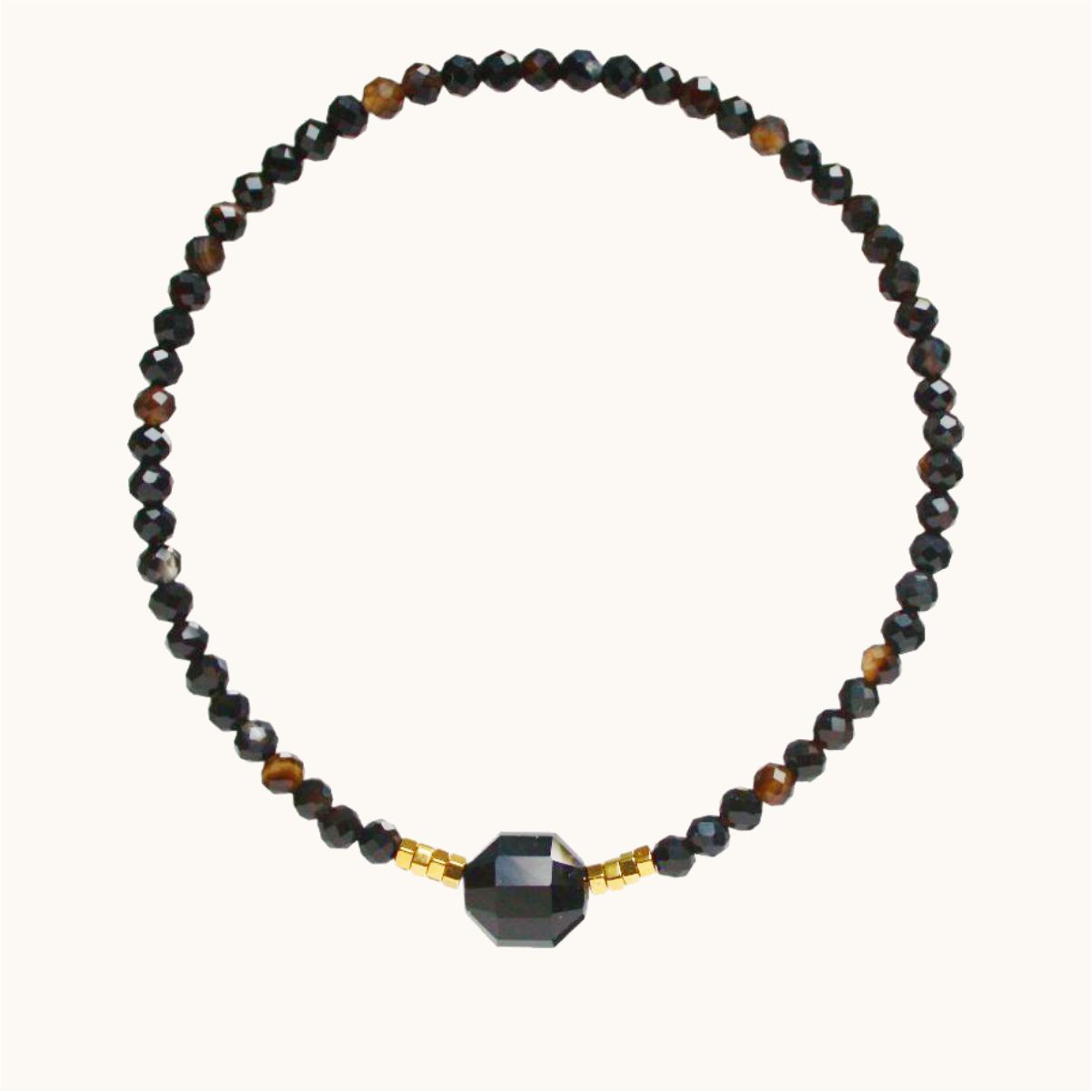 BDE91 Bransoletka elastyczna z agatów, hematytów i onyksu