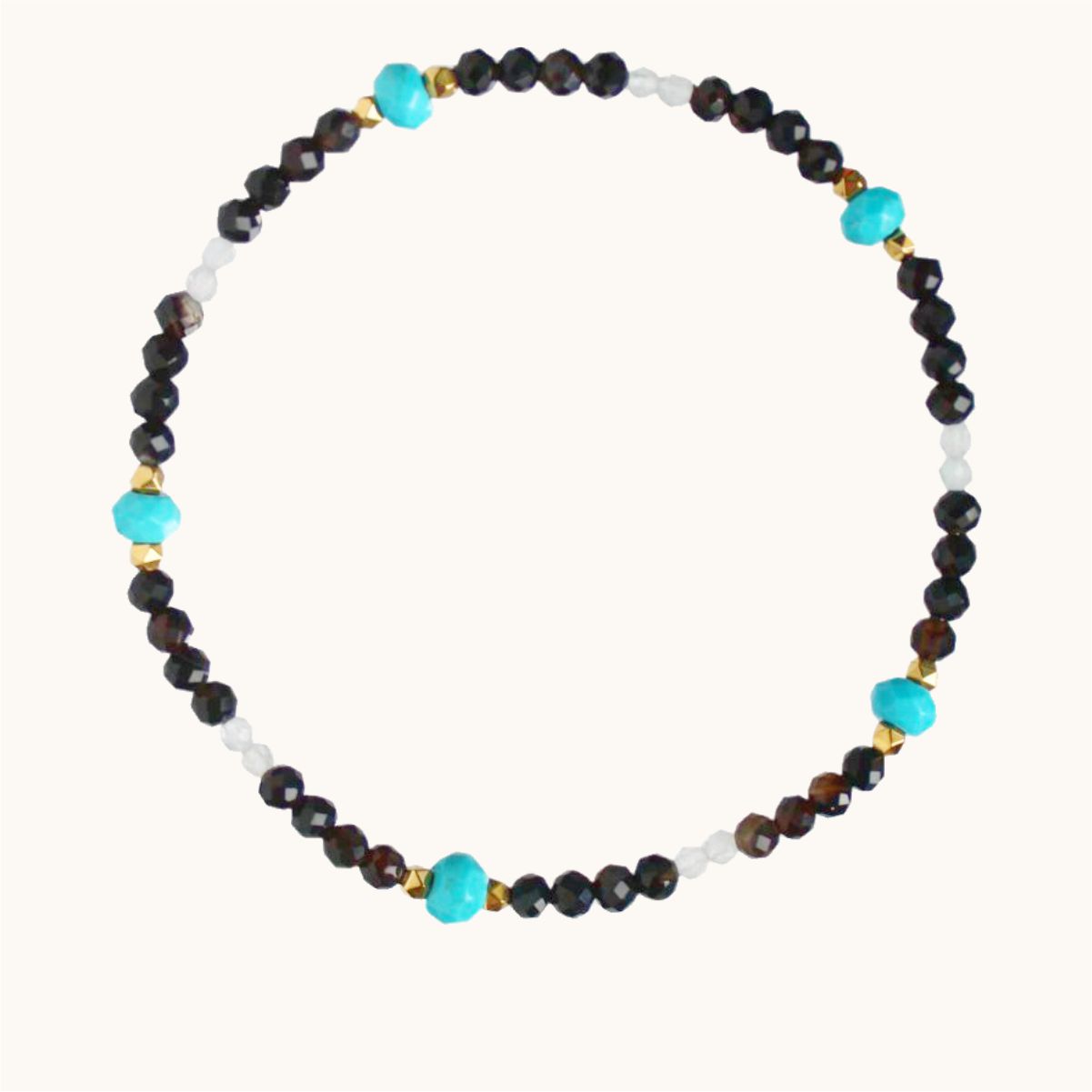 BDE93 Bransoletka elastyczna z agatów, magnezytów, akwamarynów i hematytów