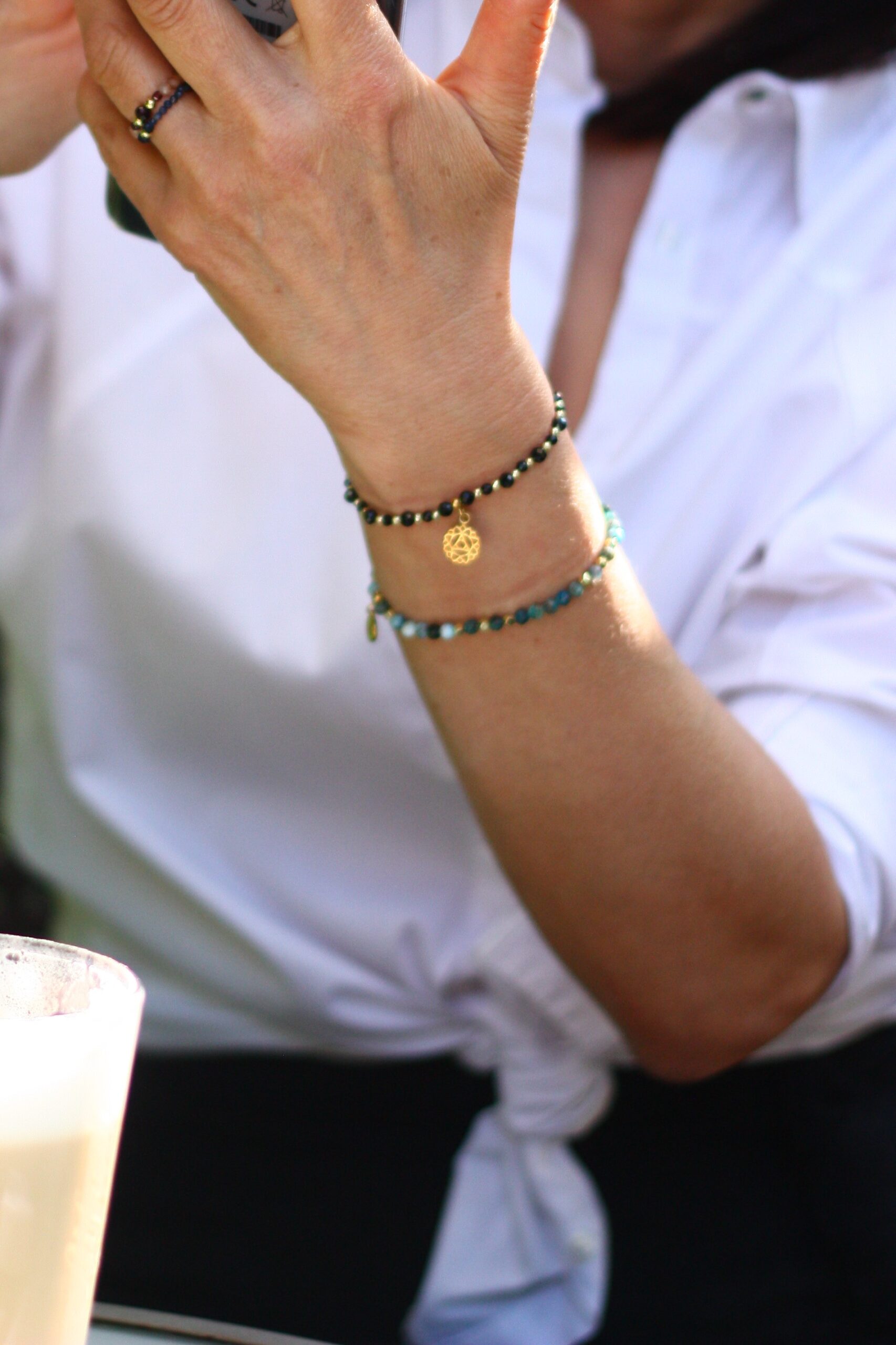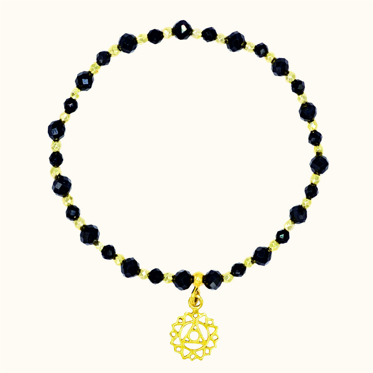BDE94 Bransoletka elastyczna ze spineli, agatów oraz srebra pozłacanego 24K