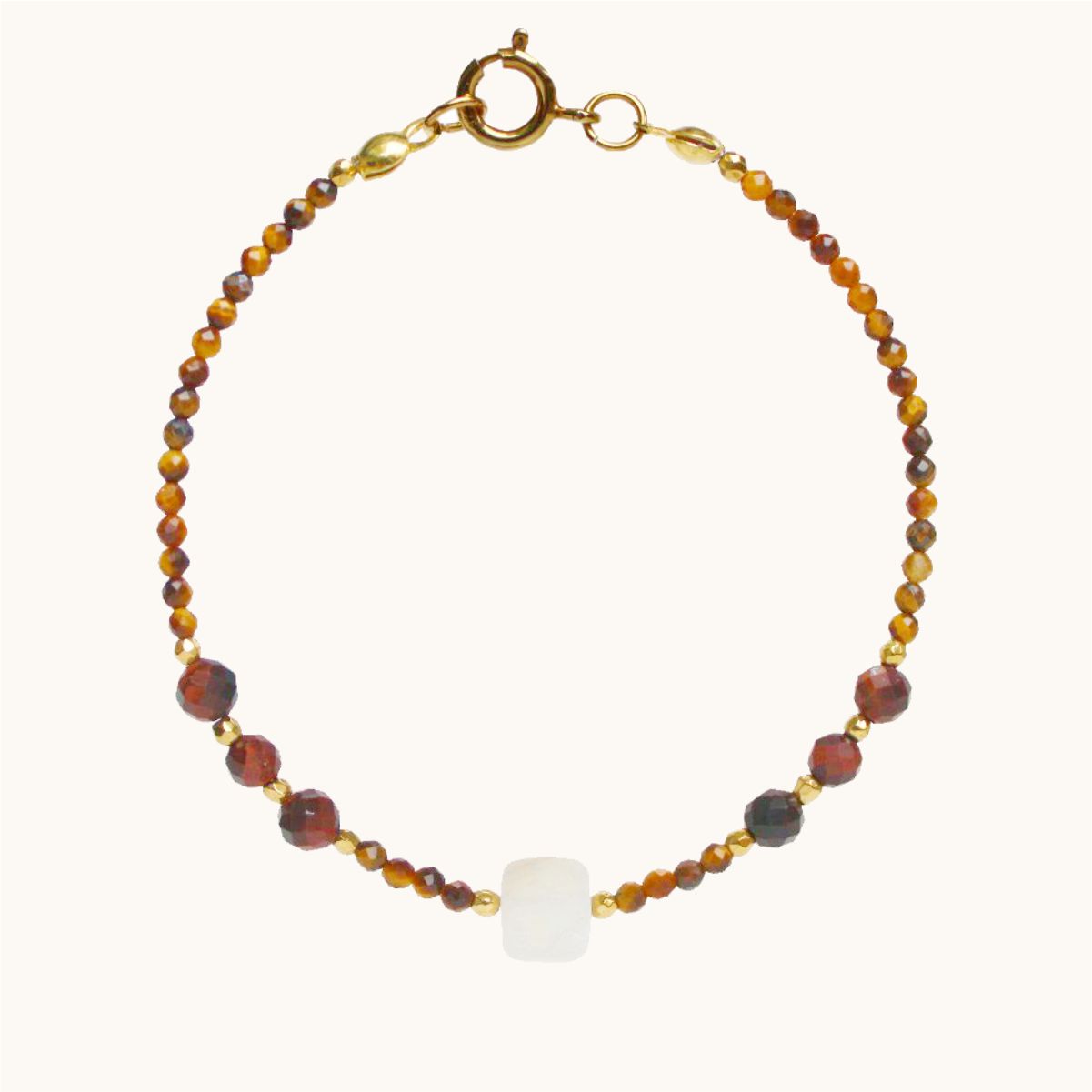 BDZ54 Bransoletka z tygrysiego oka, agatu oraz srebra pozłacanego 24K