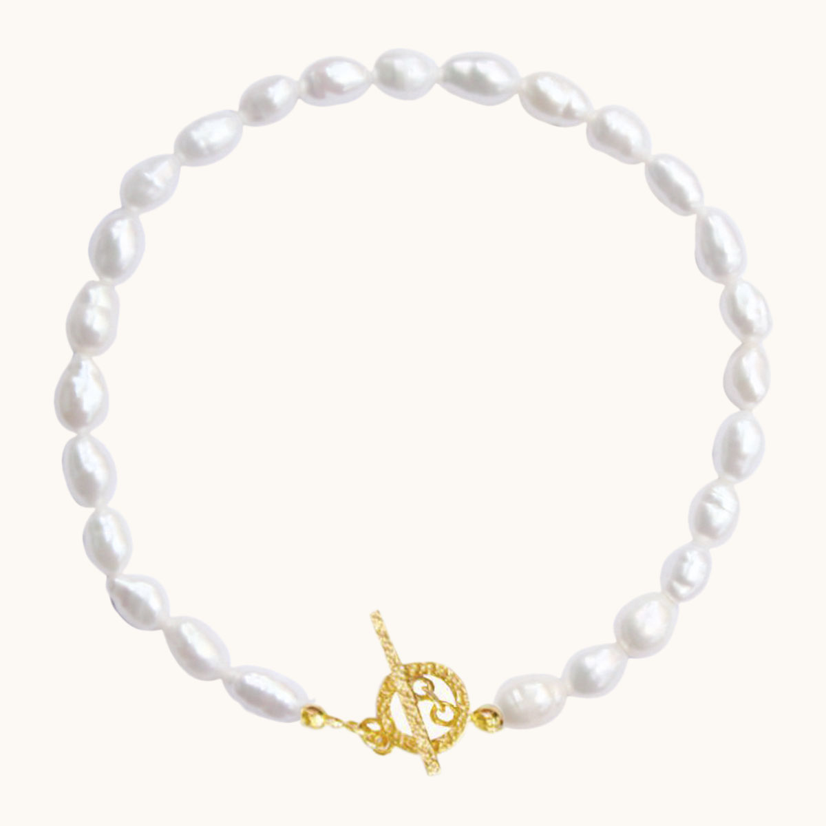 BDZ64 Bransoletka z pereł i zapięciem typu toggle ze srebra pozłacanego 24K