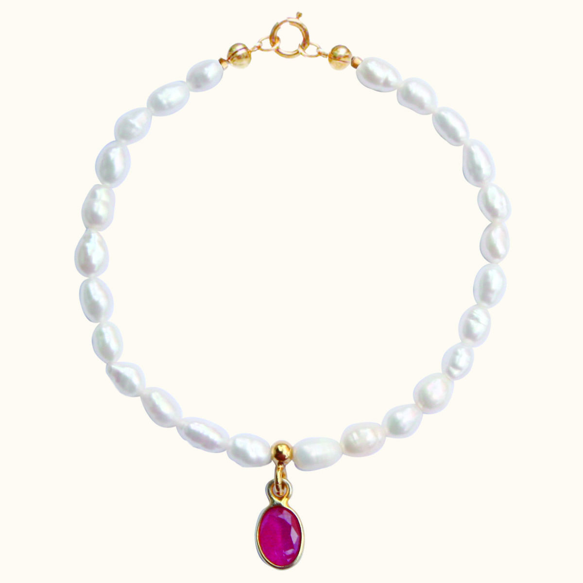 BDZ70 BRANSOLETKA Z PEREŁ I Z RUBINEM W OKUCIU ZE SREBRA POZŁACANEGO 24K