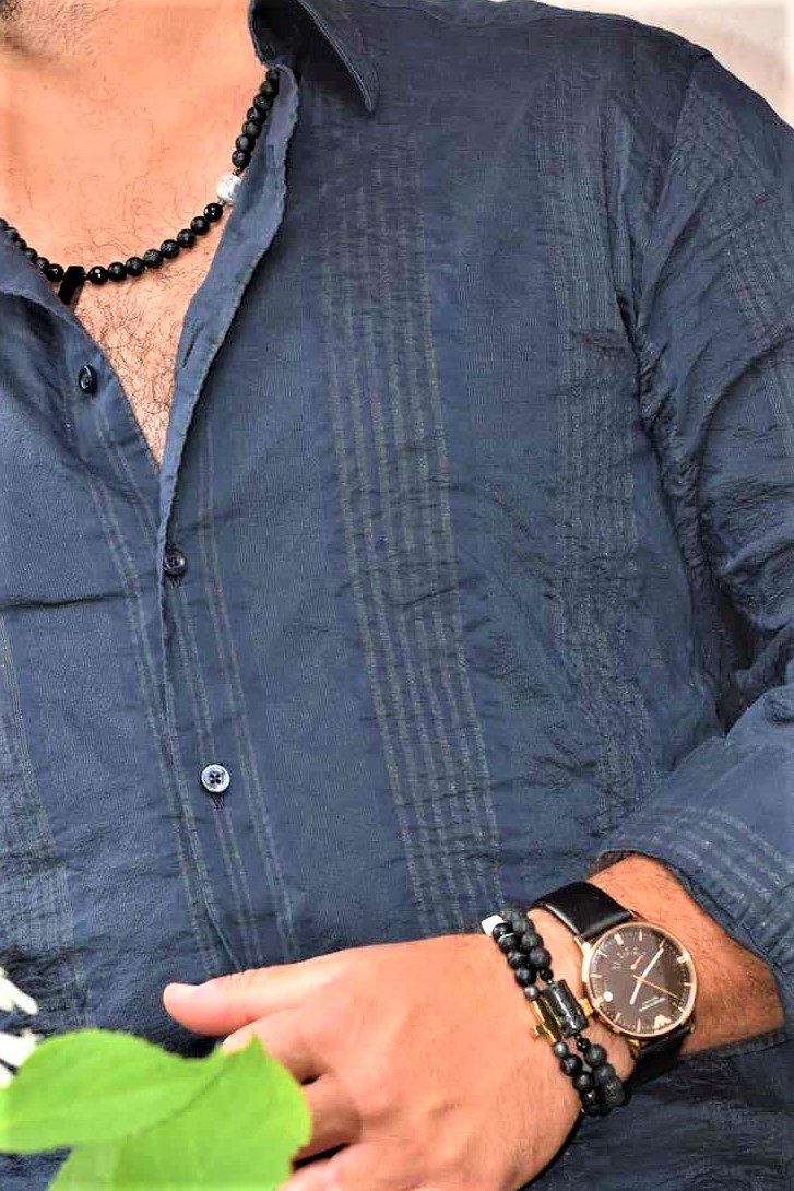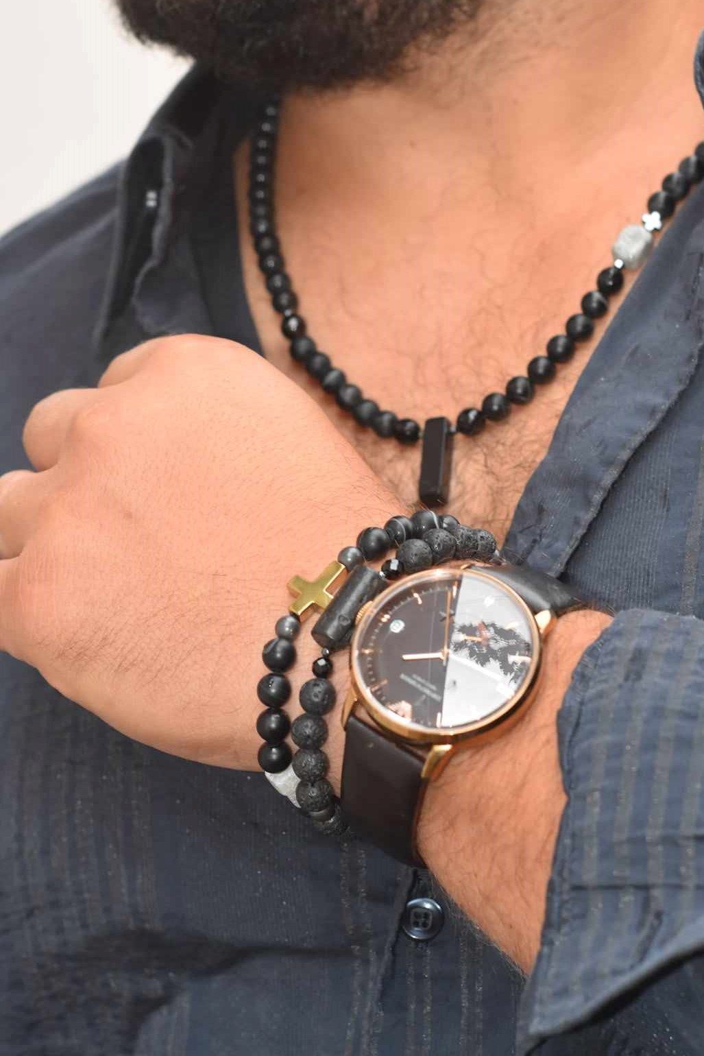 BME40 Bransoletka elastyczna z lawy wulkanicznej i agatów