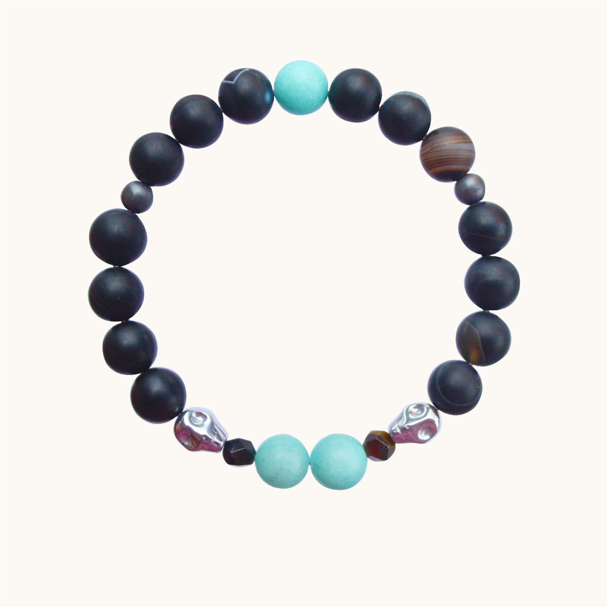 BME34 Bransoletka elastyczna z agatów, hematytów, jadeitu i tygrysiego oka