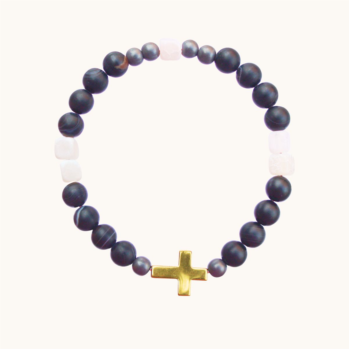 BME37 Bransoletka elastyczna z agatów i hematytów