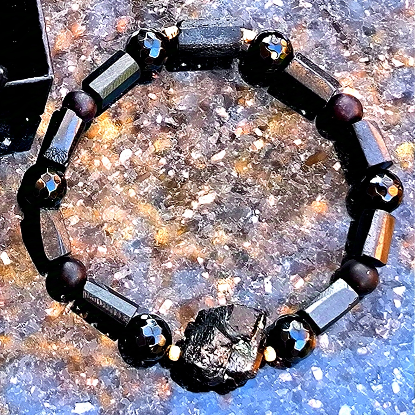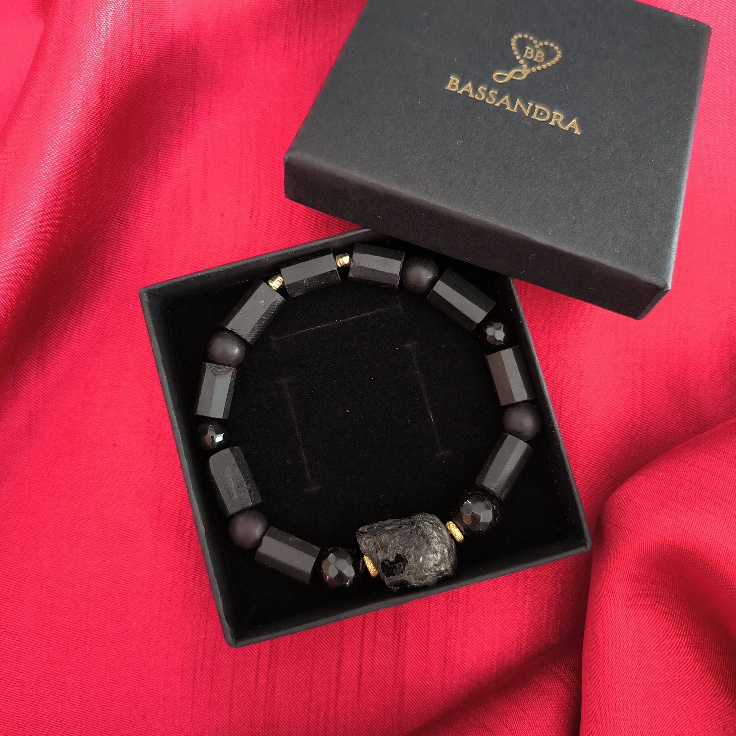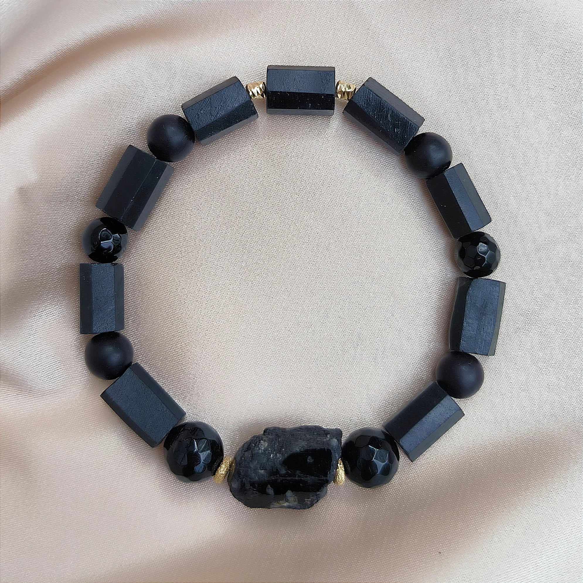 BME47 Bransoletka z turmalinów, onyksów, agatów oraz srebra z 18K złotem