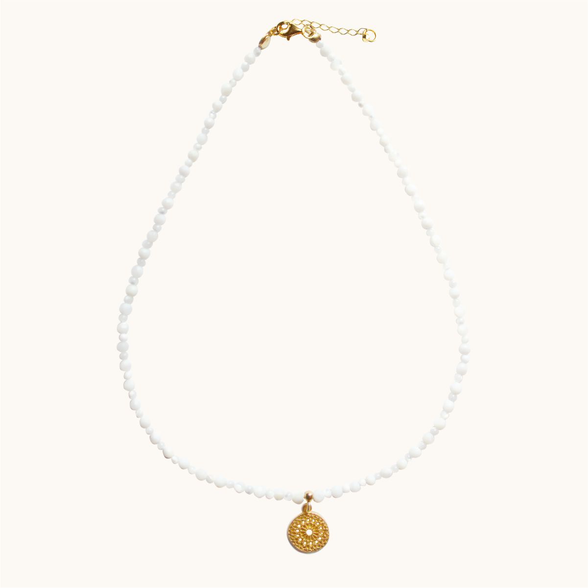N41 Naszyjnik z masy perłowej oraz srebra pozłacanego 24K