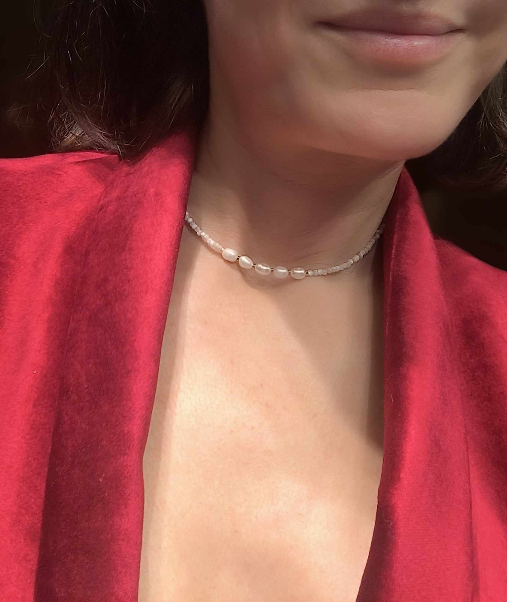 N62 Naszyjnik pereł i masy perłowej oraz srebra pozłoconego 24K