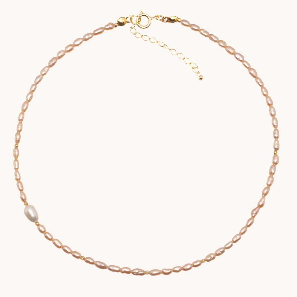 N72 Naszyjnik z perełek łososiowych oraz srebra pozłoconego 24K