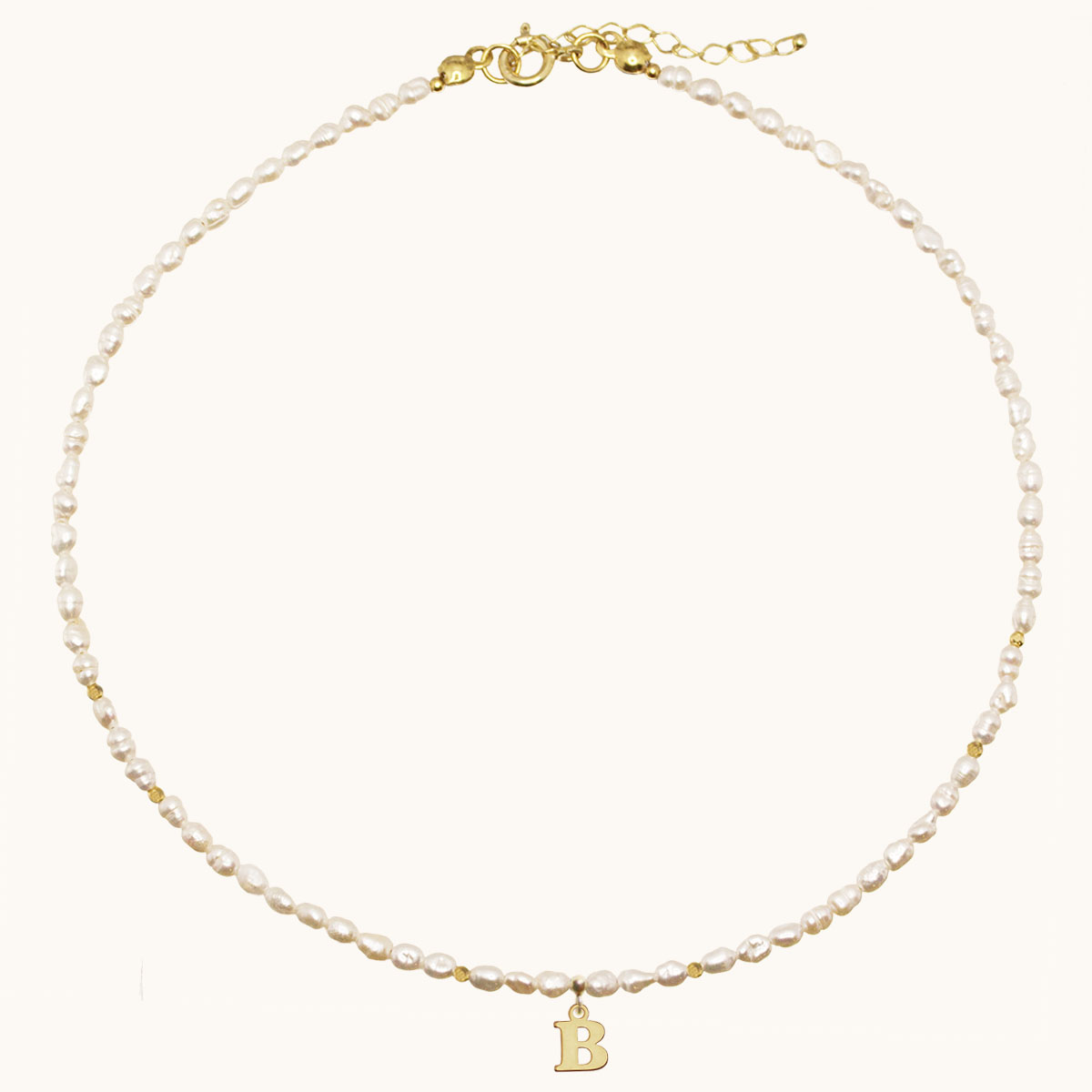 N85 NASZYJNIK Z PEREŁ, Z LITERKĄ I SREBRA POZŁACANEGO 24K