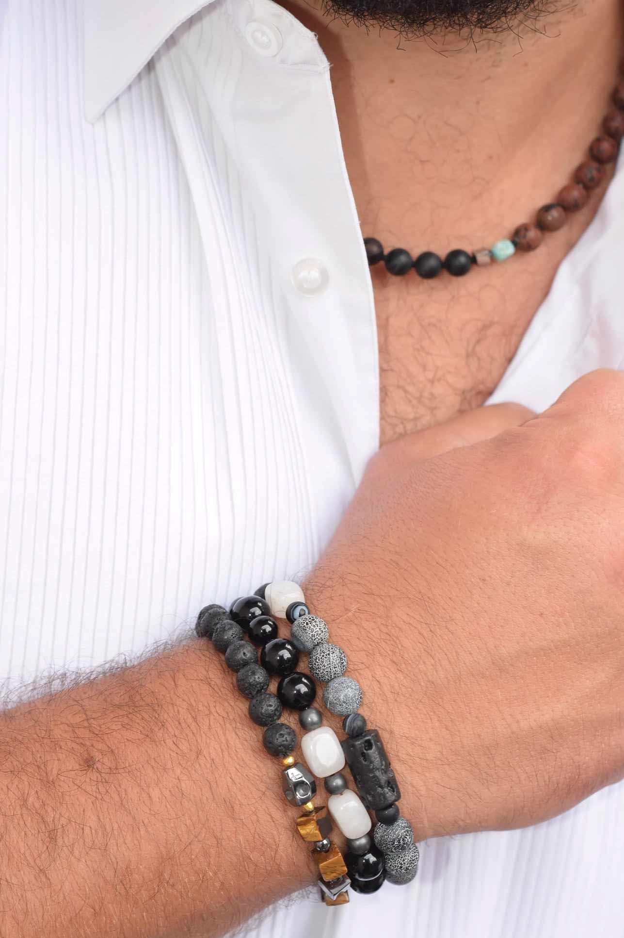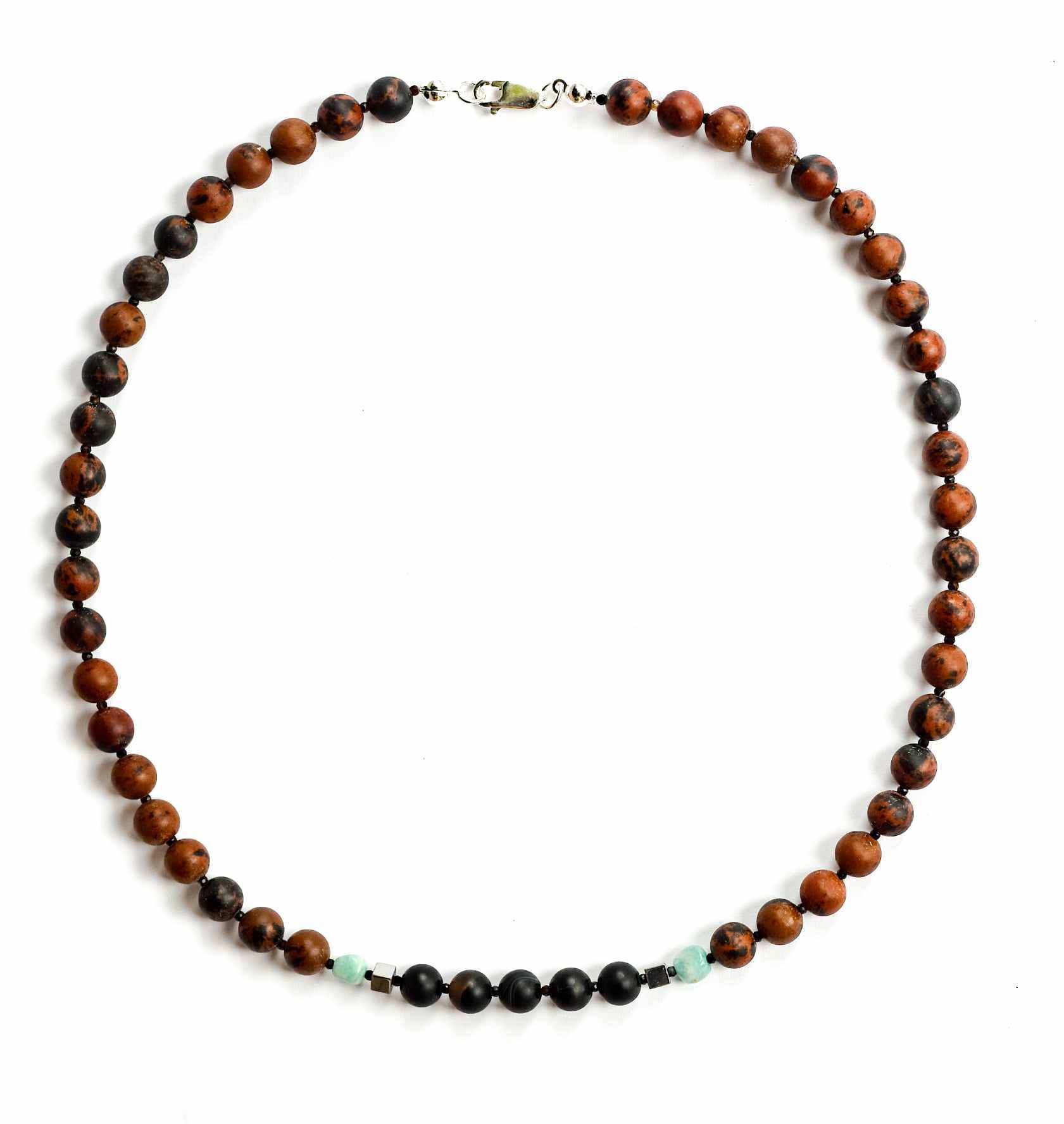 NM18 Naszyjnik z agatów, amazonitów i hematytów oraz srebra Ag925