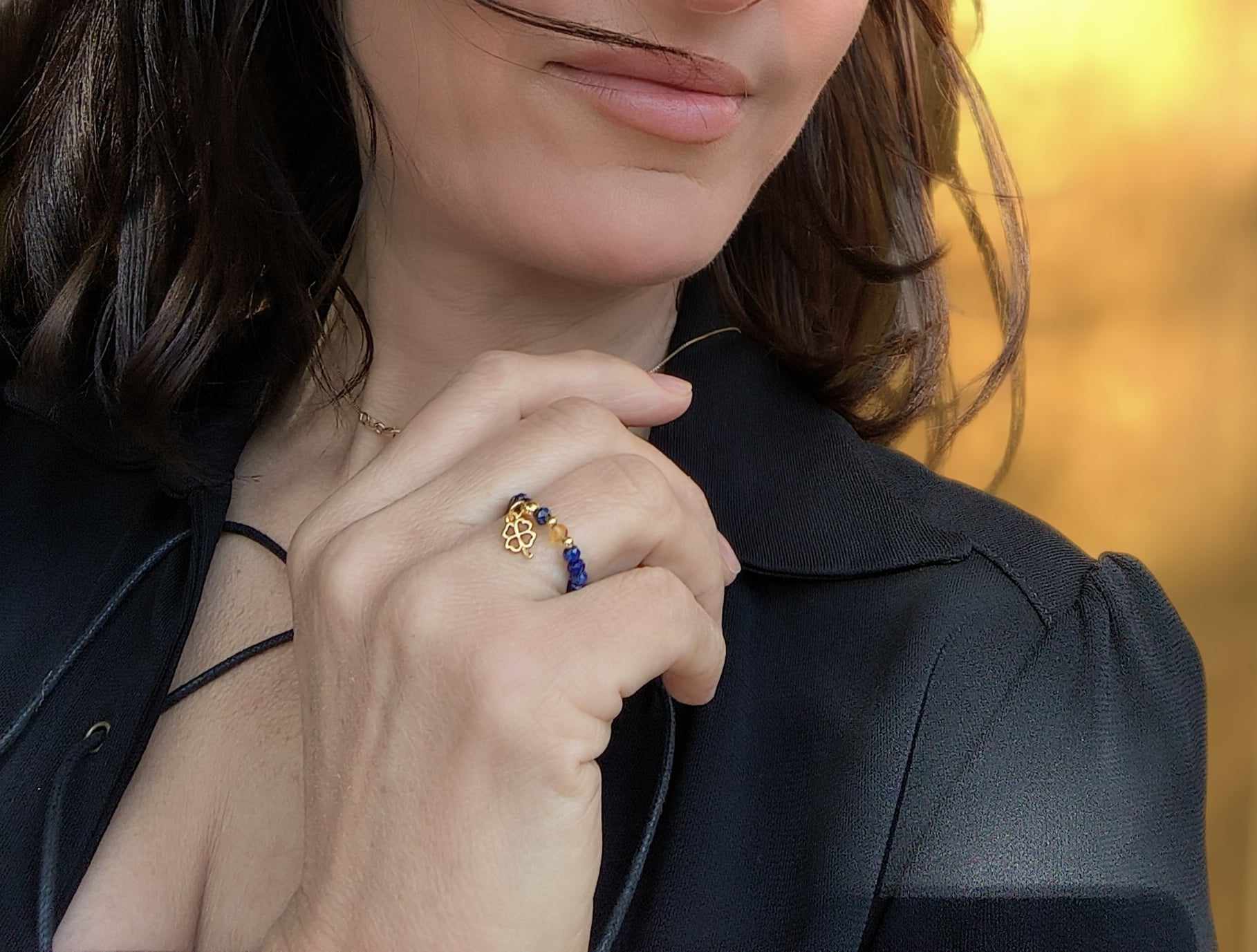 PE106 Pierścionek elastyczny z lapis lazuli, spinelem oraz srebrem pozłacanym 24K