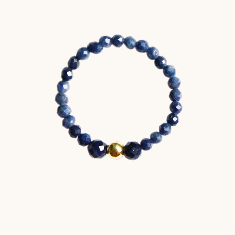 PE61 Pierścionek elastyczny z szafirów i srebra pozłacanego 24K
