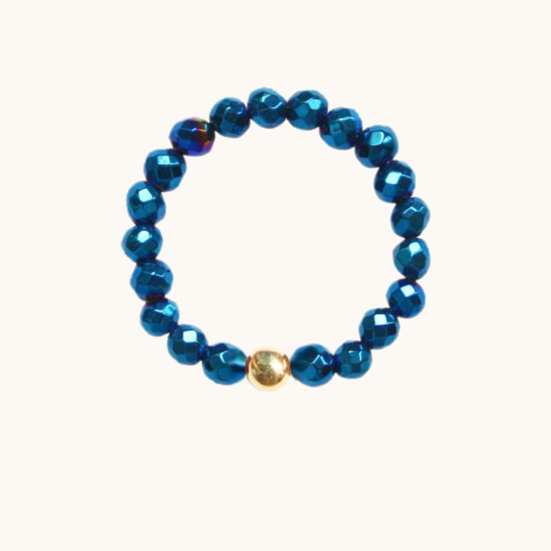 PE65 Pierścionek elastyczny z hematytów i srebra pozłacanego 24K