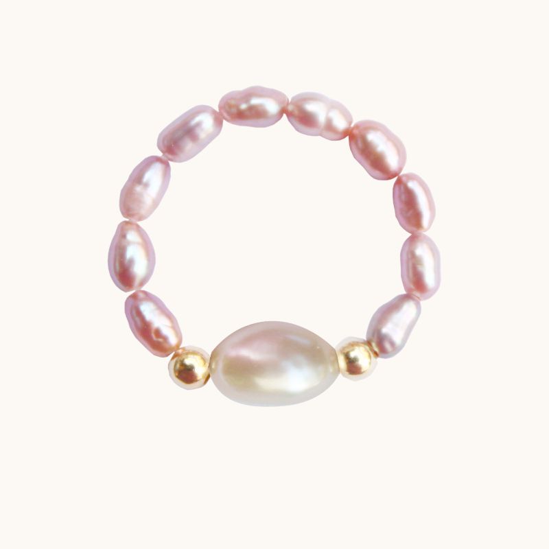 PE83 Pierścionek elastyczny z fioletowych perełek i srebra pozłacanego 24K