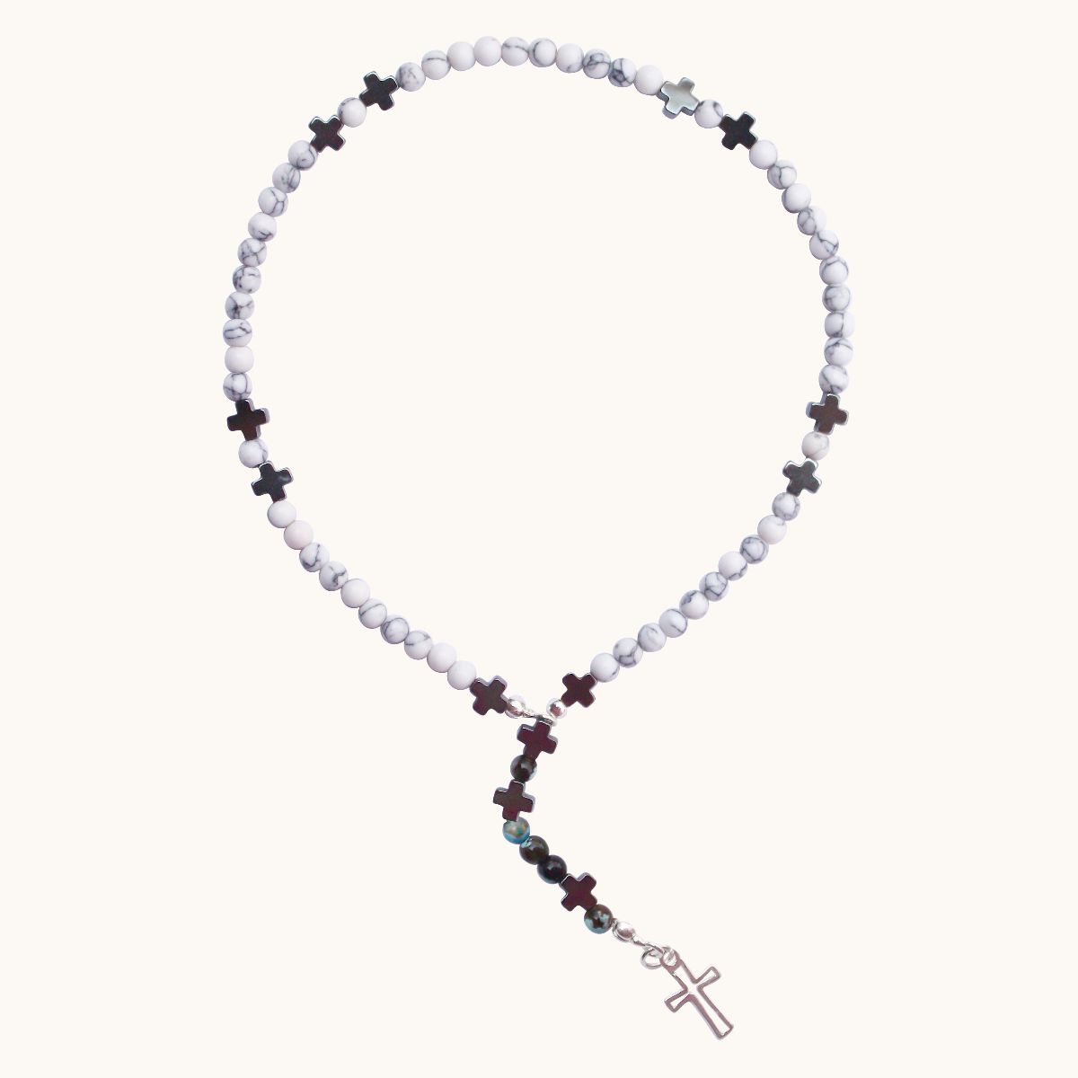 R2 Różaniec z howlitów, agatów i hematytów oraz srebra Ag925