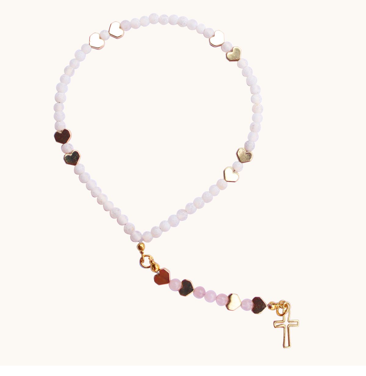 R4 Różaniec z agatów, hematytów, kwarcu różowego oraz srebra Ag925